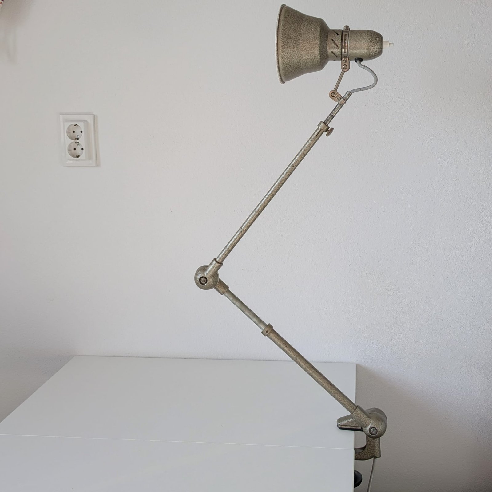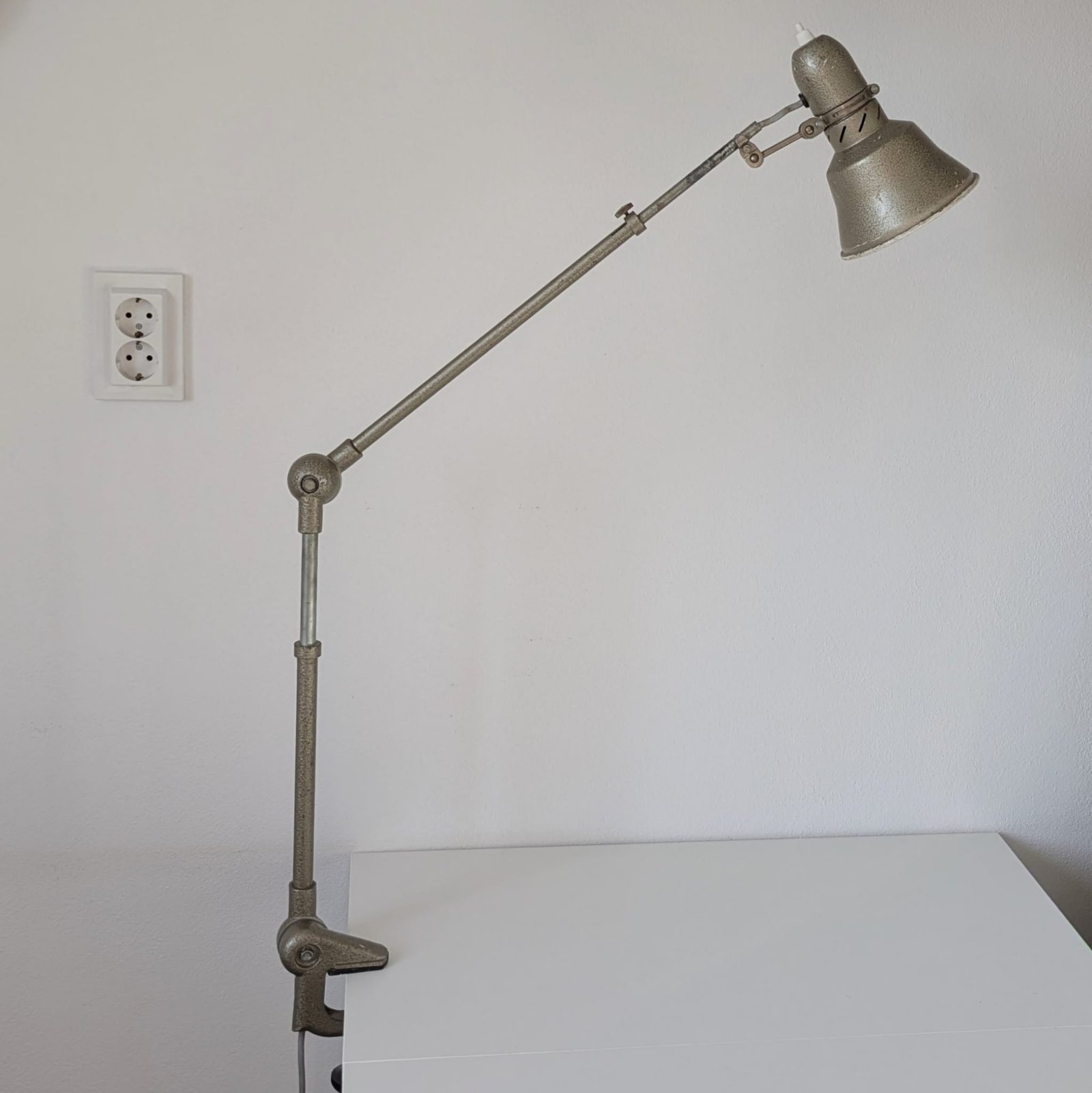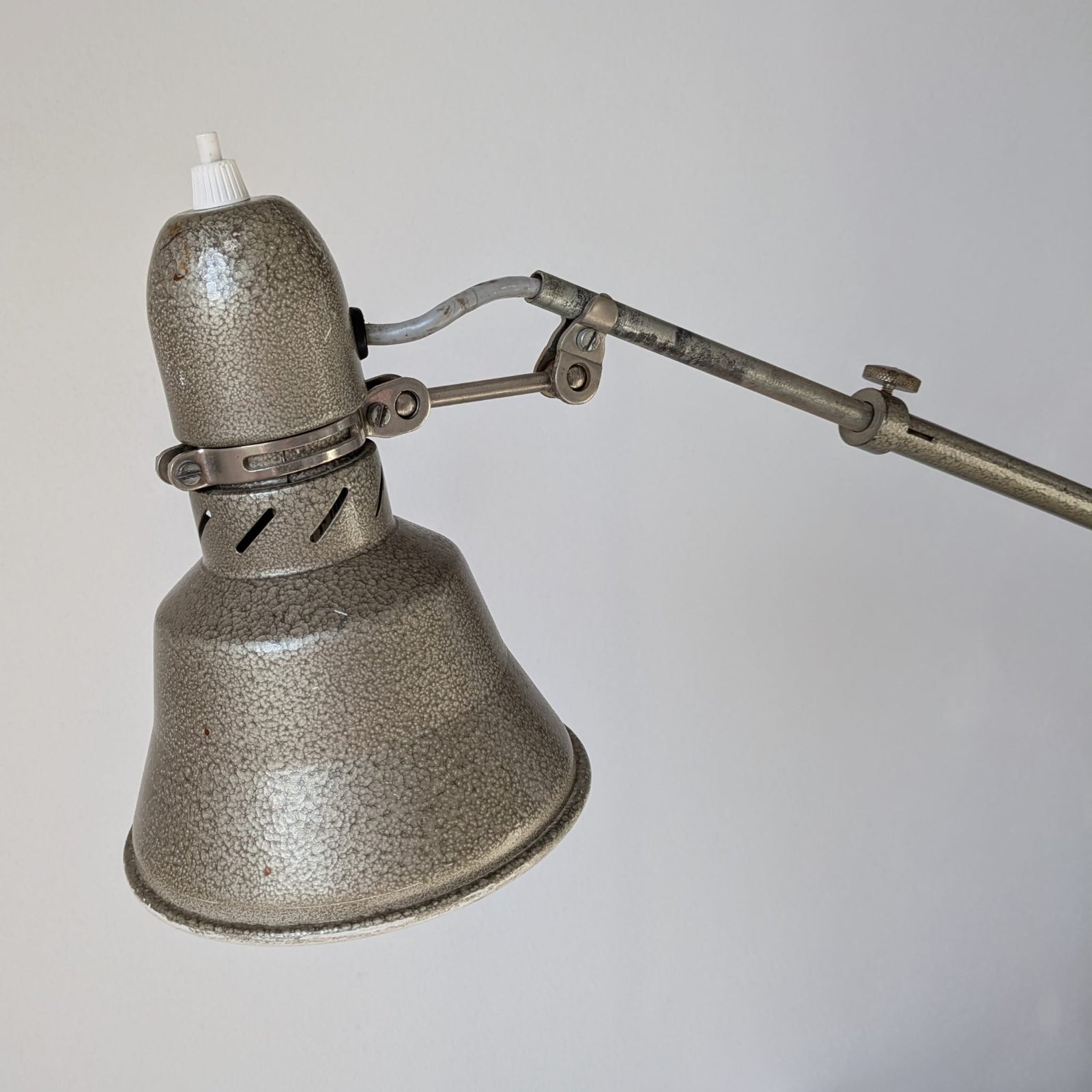 Lampă de atelier industrială marca Lumina circa 1950, în starea sa originală.