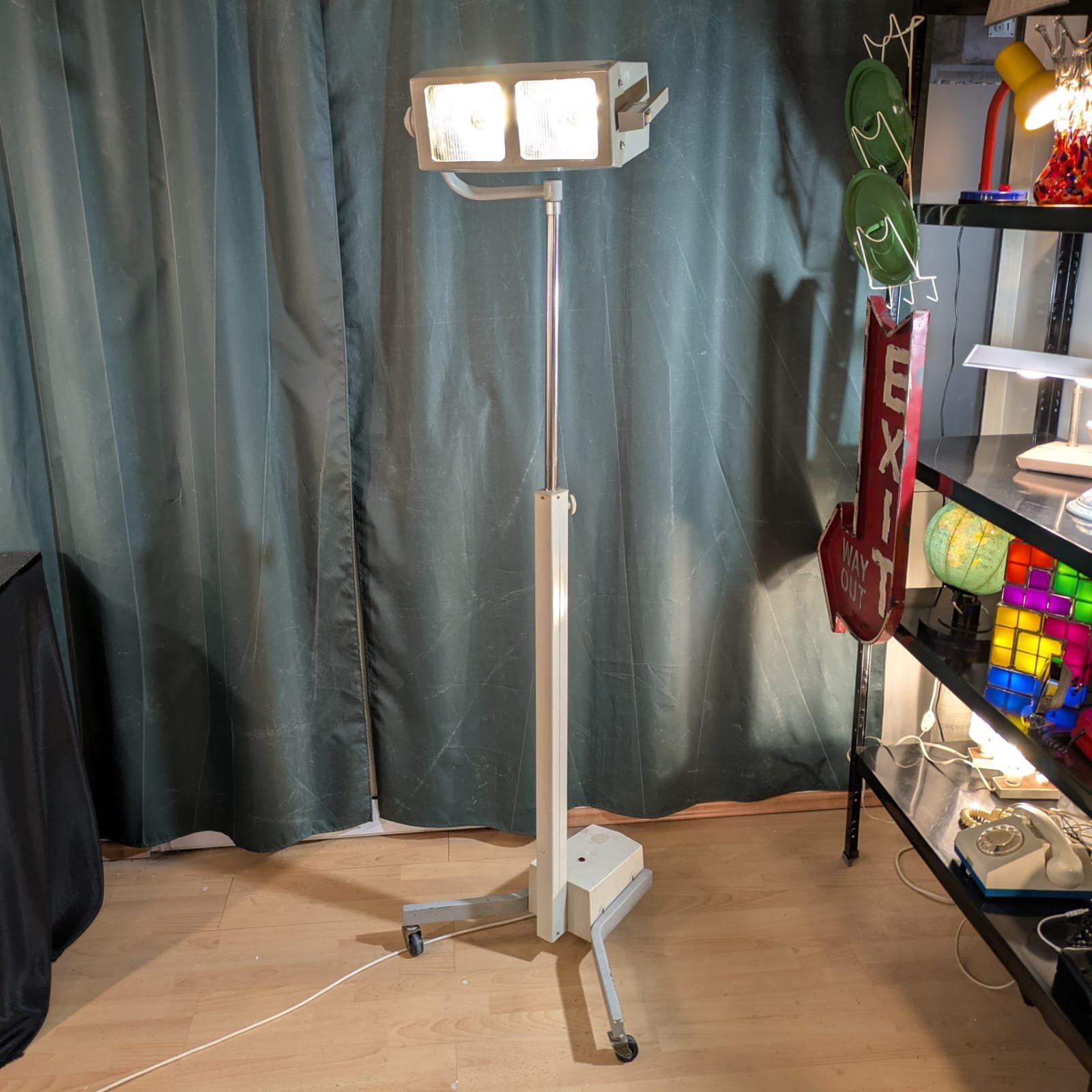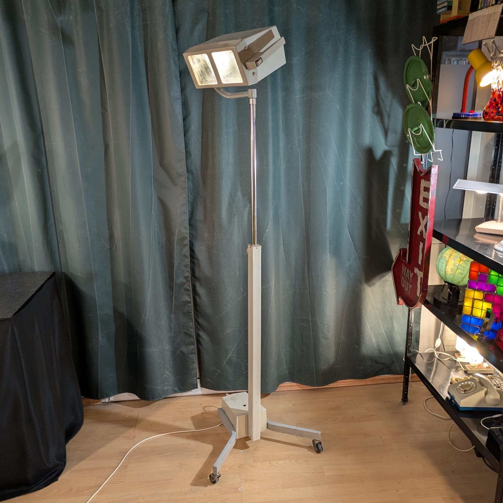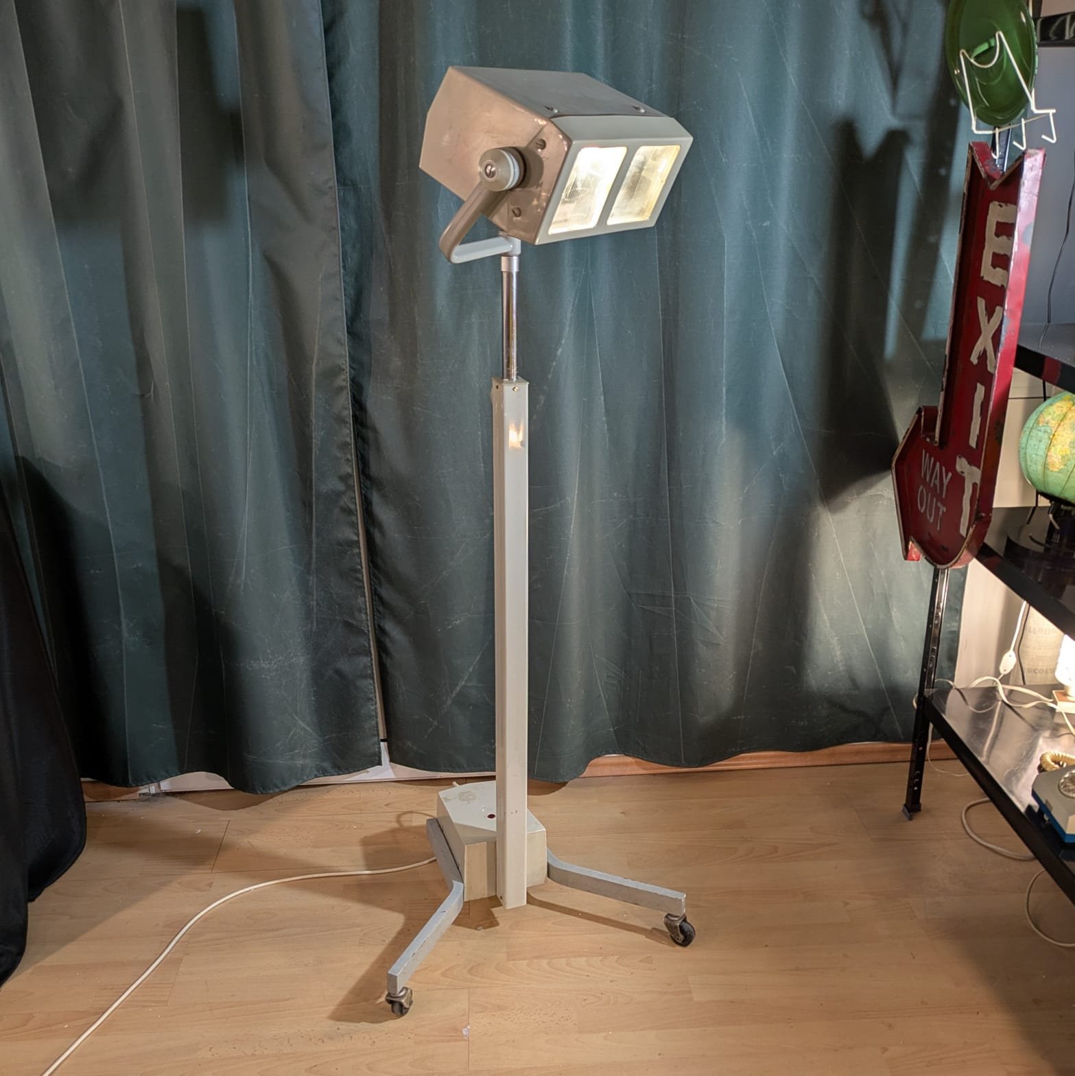 În partea inferioară a bazei se află un transformator încorporat (scos din uz/anulat), o carcasă metalică cu mâner pentru reglarea unghiului de înclinare a lămpii și un comutator. Gamă largă de setări sus-jos. Întregul set este plasat pe trei roți. Modelul oferit este foarte căutat și apreciat de pasionații „erei spațiale” și este denumit popular „UFO” dar am adăuga noi și supranumele de Wall-e după celebrul personaj Pixar.