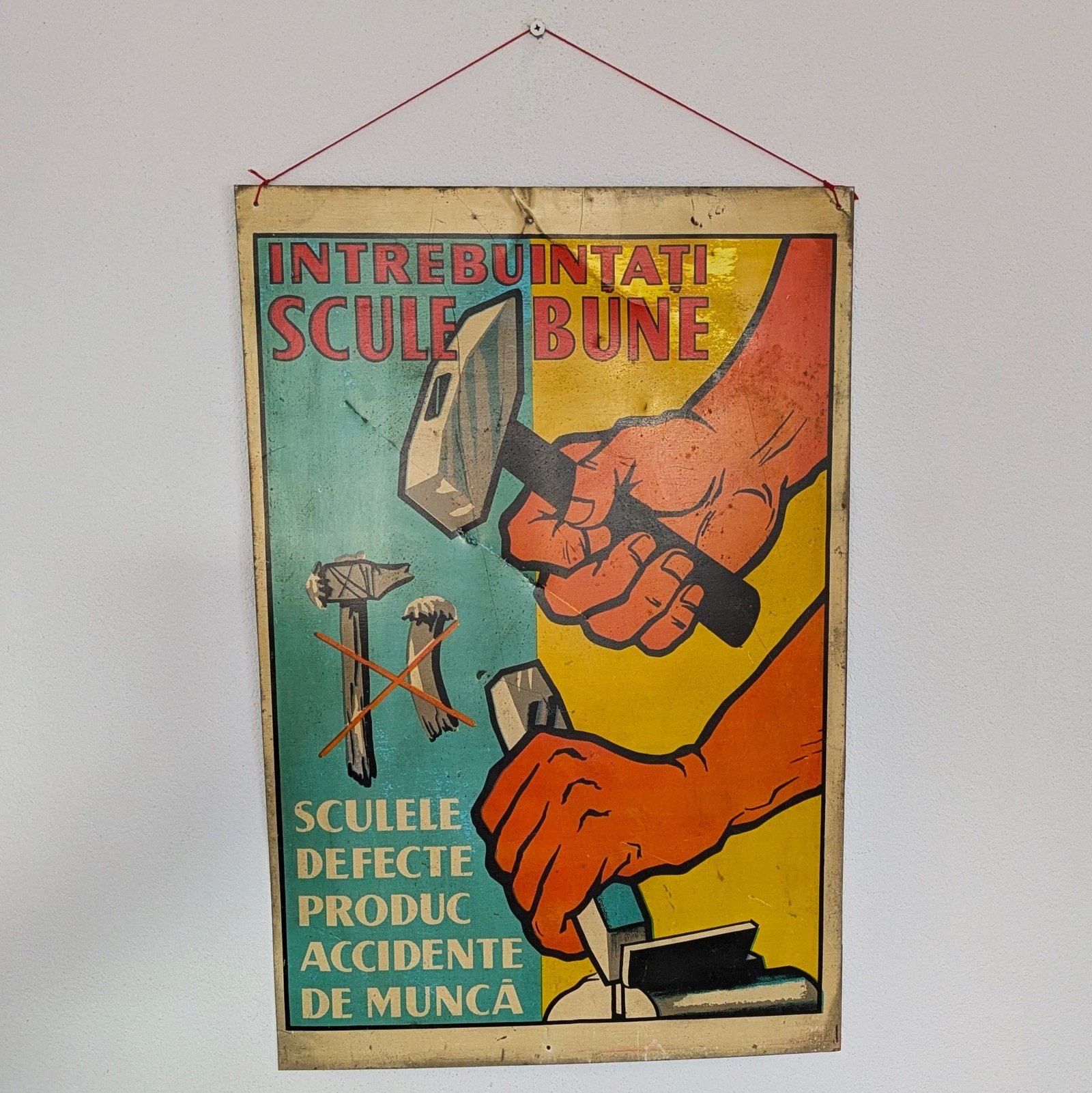 Tablă din anii ’70 provenită cel mai probabil dintr-o secție de producție a unei fabrici.
